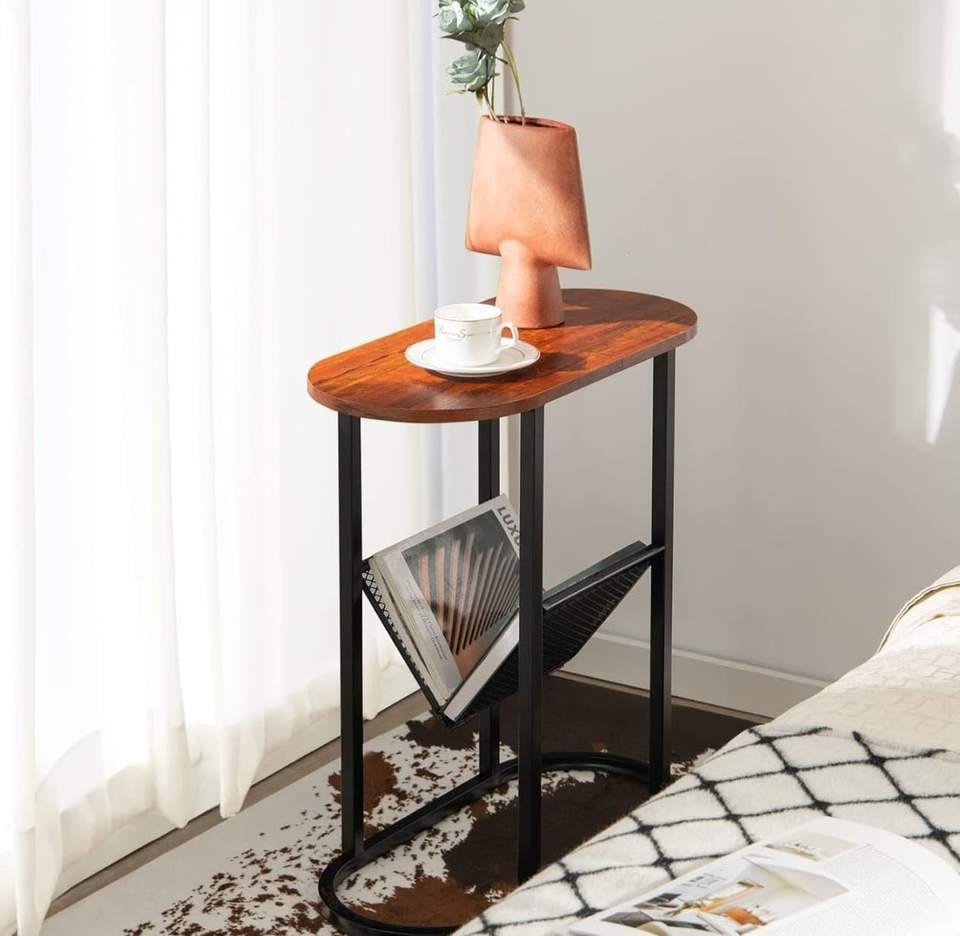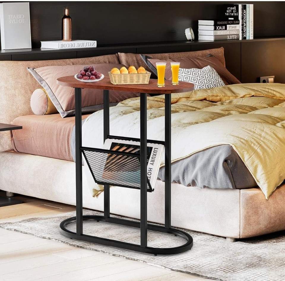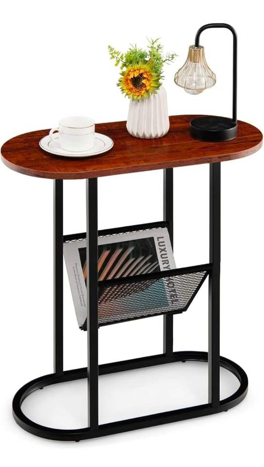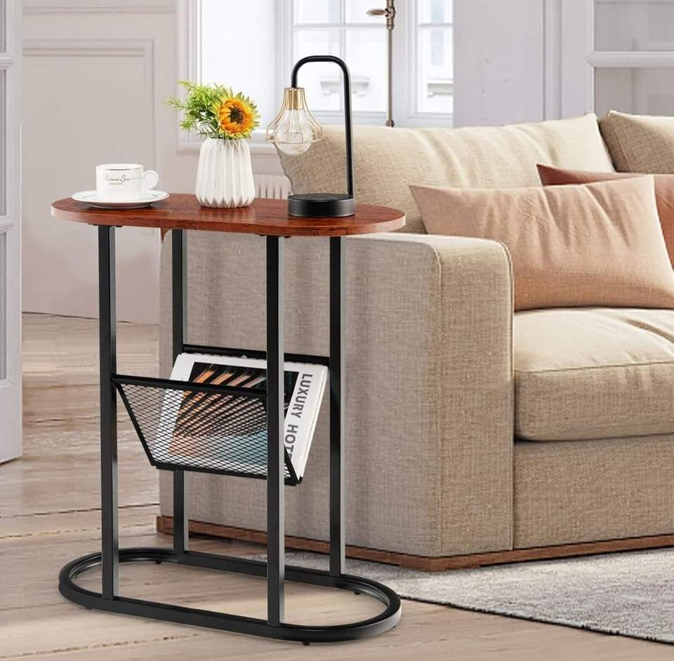 โต๊ะกาแฟ/โต๊ะข้างทรงวงรีขนาดเล็ก ดีไซน์โบราณแบบดั้งเดิม โครงโลหะ ทนทาน พร้อมที่เก็บนิตยสาร เหมาะสำหรับห้องนั่งเล่น