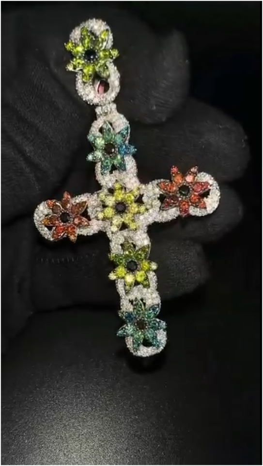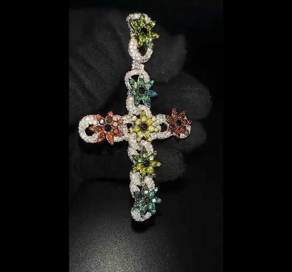 จี้สร้อยคอรูปกางเขนแบบฮิปฮอปสำหรับทุกเพศ ดีไซน์ดอกไม้ 3 มิติ ประดับโมอิสซาไนต์ ชุบทองคำสีกุหลาบ เงินสเตอร์ลิงคุณภาพสูงสั่งทำพิเศษ