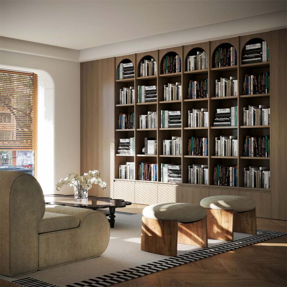 เฟอร์นิเจอร์ห้องอ่านหนังสือระดับไฮเอนด์ ตู้หนังสือสั่งทำ ชั้นวางหนังสือ ชั้นโชว์