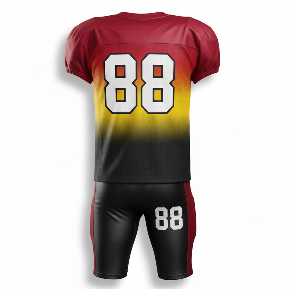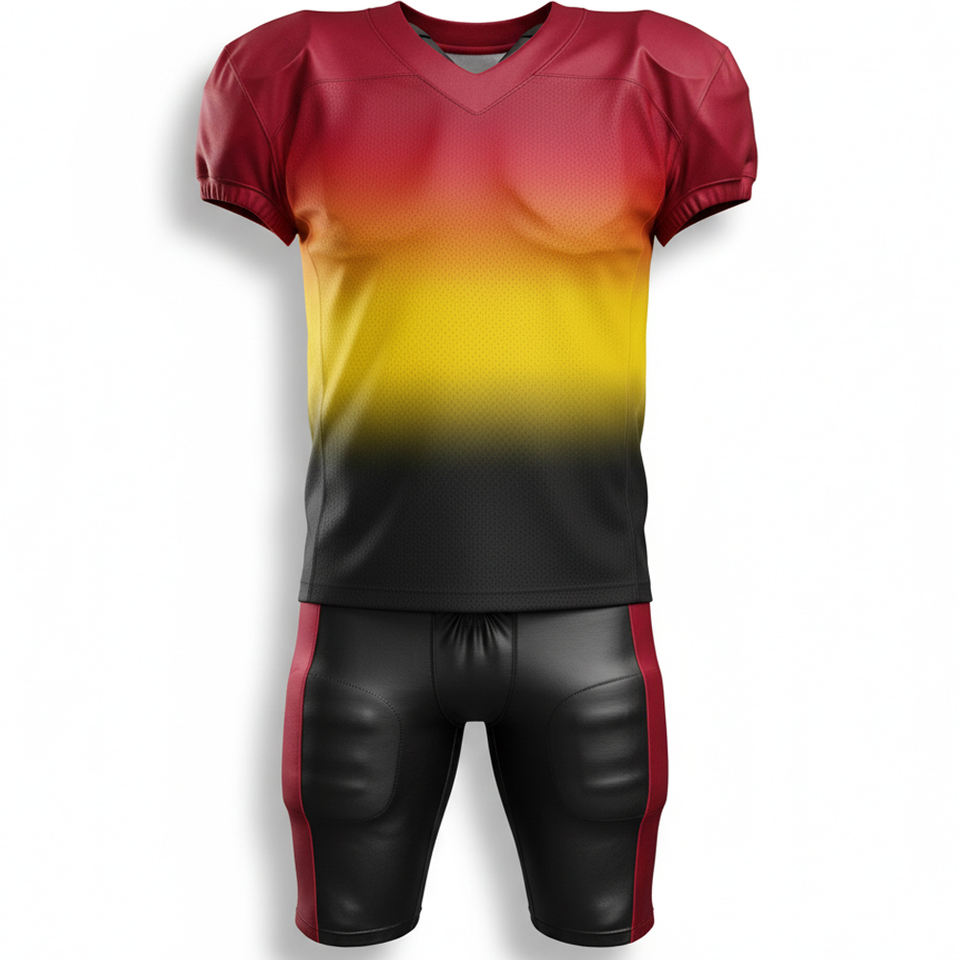 ชุดยูนิฟอร์มอเมริกันฟุตบอลแบบซับลิเมชั่นระดับไฮเอนด์ ออกแบบเองได้ ชุดแข่งแบบซับลิเมชั่นเต็มตัว อุปกรณ์กีฬากริดริออนระดับมืออาชีพ