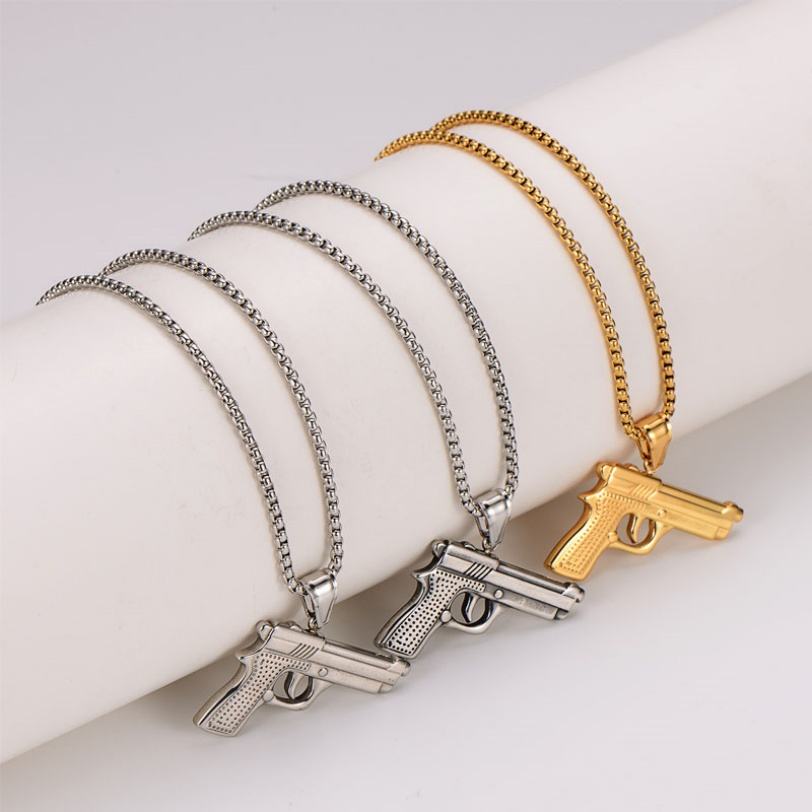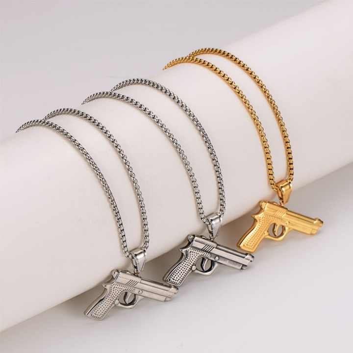 สร้อยคอแฟชั่นกันน้ำระดับไฮเอนด์ ไม่ลอก ไม่ดำ ดีไซน์ยาว สร้อยสแตนเลสชุบทอง 18k พร้อมจี้รูปปืน สำหรับผู้ชายและผู้หญิง
