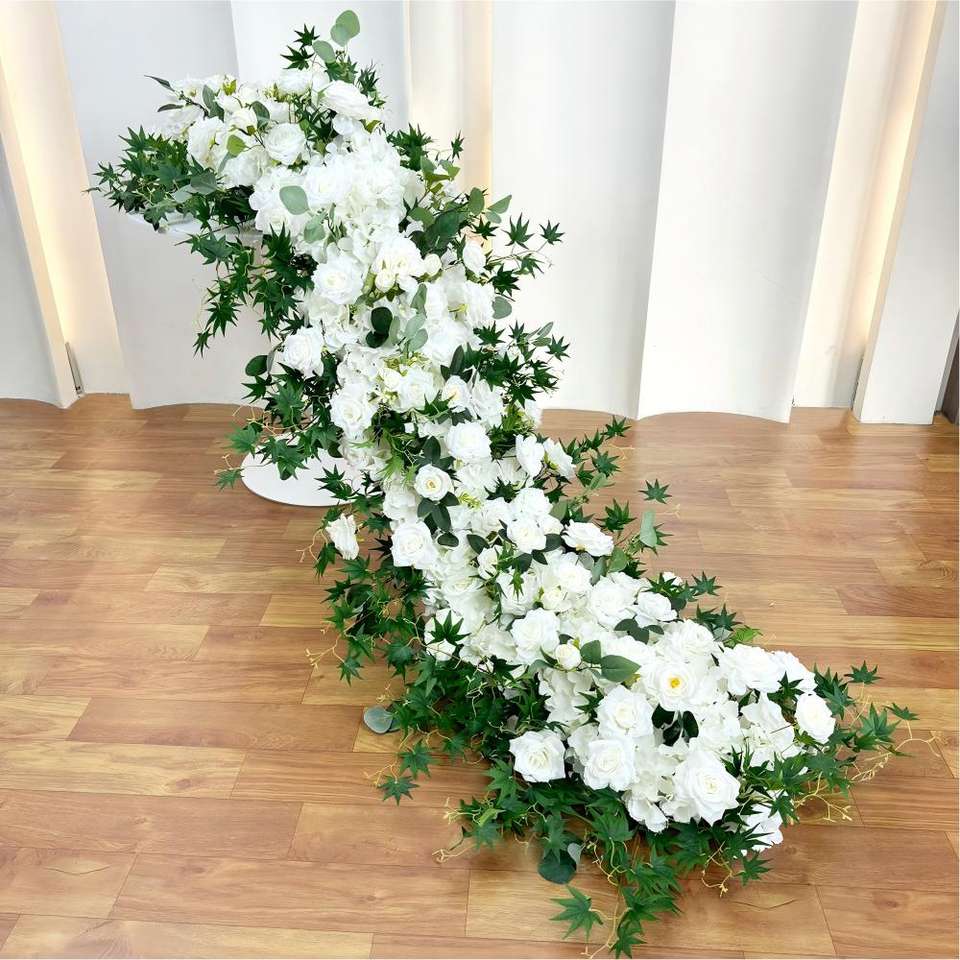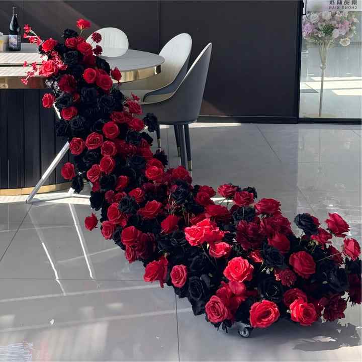 ของตกแต่งโต๊ะงานแต่งงานระดับไฮเอนด์ แถบดอกไม้สีแดงยาว 2 เมตร ผ้าไหมประดับดอกไม้สีแดงเบอร์กันดี