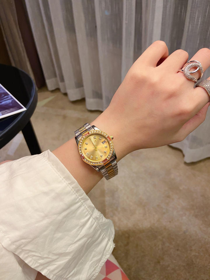 นาฬิกาข้อมือผู้หญิงระดับไฮเอนด์ สายสแตนเลสสีทอง ระบบควอตซ์ ดีไซน์หรูหรา พร้อมกล่องใส่เครื่องประดับ แถมฟรี ขายตรงจากโรงงาน