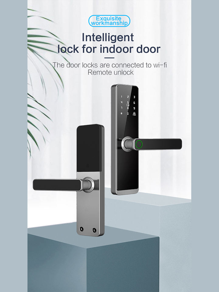 ระบบล็อคประตูอัจฉริยะแบบสแกนลายนิ้วมือ วัสดุไม้คุณภาพสูง สำหรับสำนักงาน โรงแรม บ้านพักอาศัย ภายในอาคาร พร้อมระบบจัดเก็บข้อมูลบนคลาวด์ และเชื่อมต่อเครือข่าย Wi-Fi