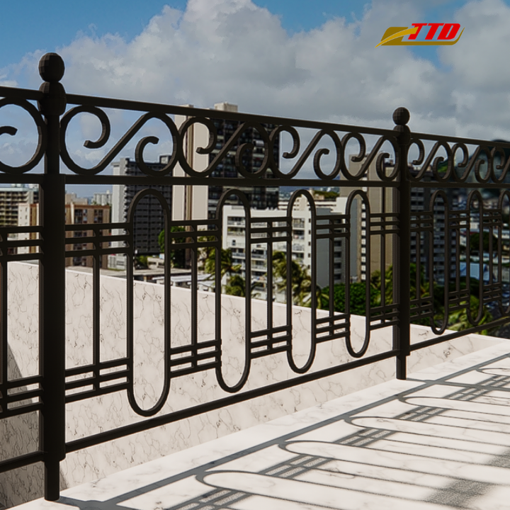 ราวระเบียงเหล็กดัดคุณภาพสูงสำหรับการออกแบบระเบียงสมัยใหม่และการตกแต่งราวระเบียงเหล็กกลางแจ้งอย่างหรูหรา
