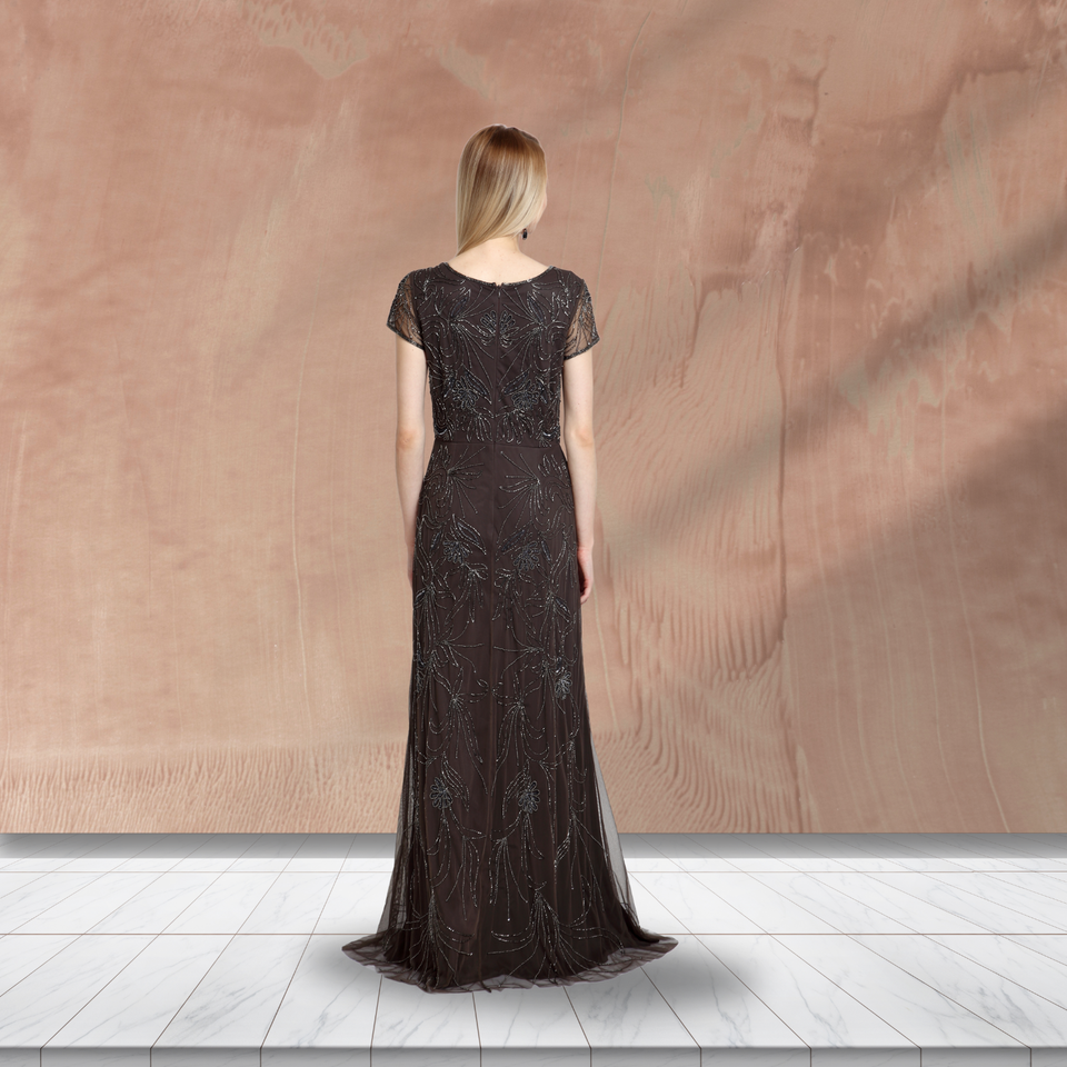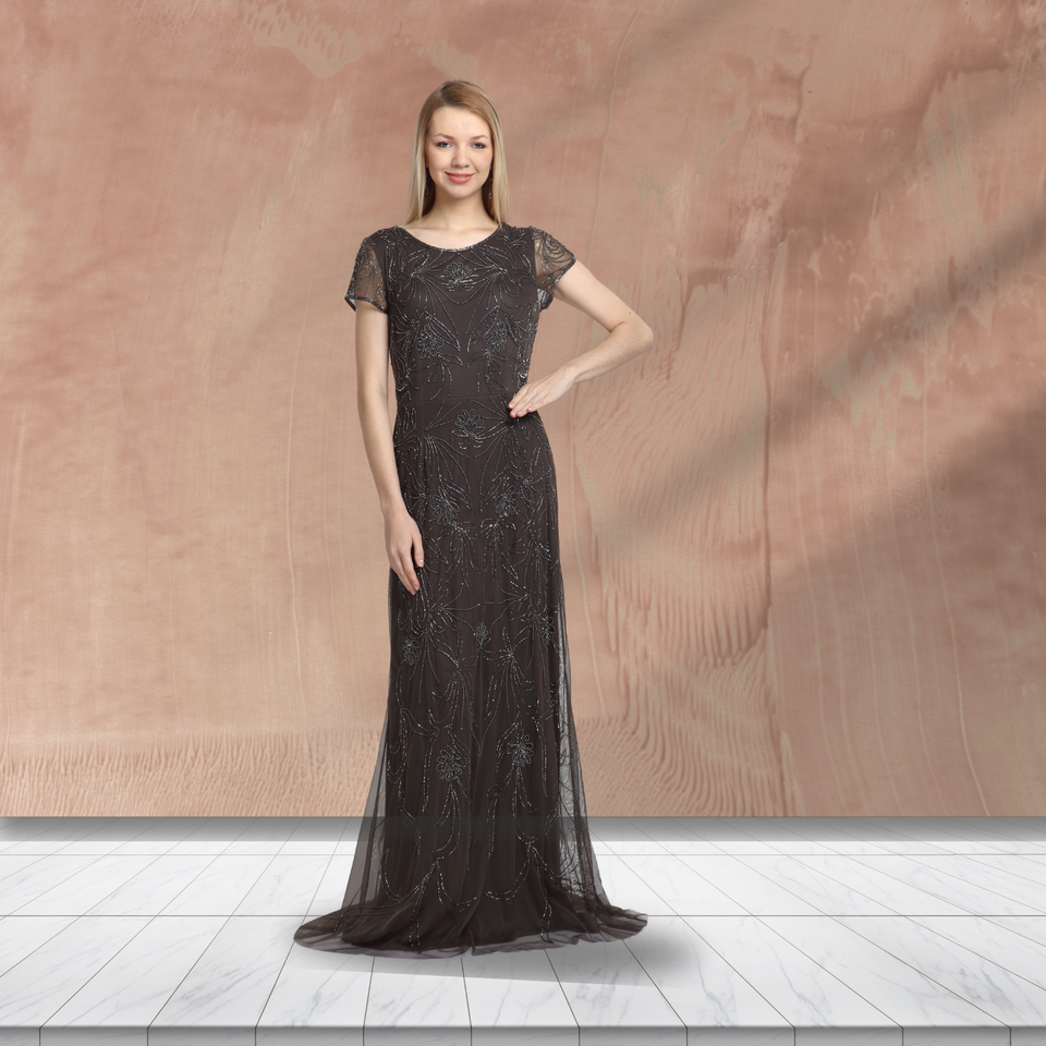 ชุดราตรีทรงเอไลน์งานทำมือแขนยาวปักเลื่อมหรูหราชุดปาร์ตี้งานแต่งงาน