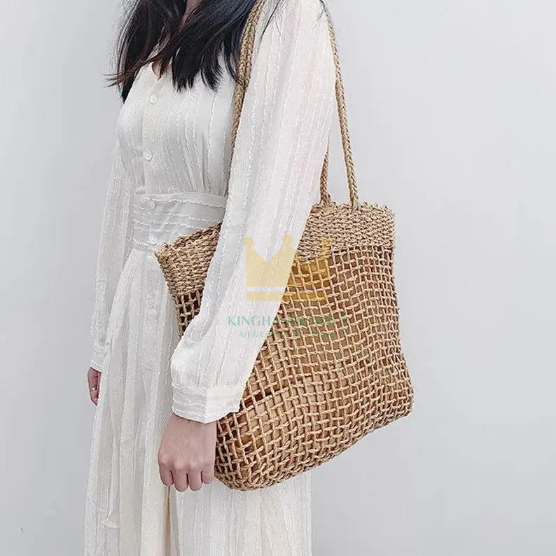 กระเป๋าชายหาดสไตล์โบโฮพร้อมวัสดุผักตบชวามีพู่ห้อยจากผู้ผลิตชั้นนำในเวียดนาม