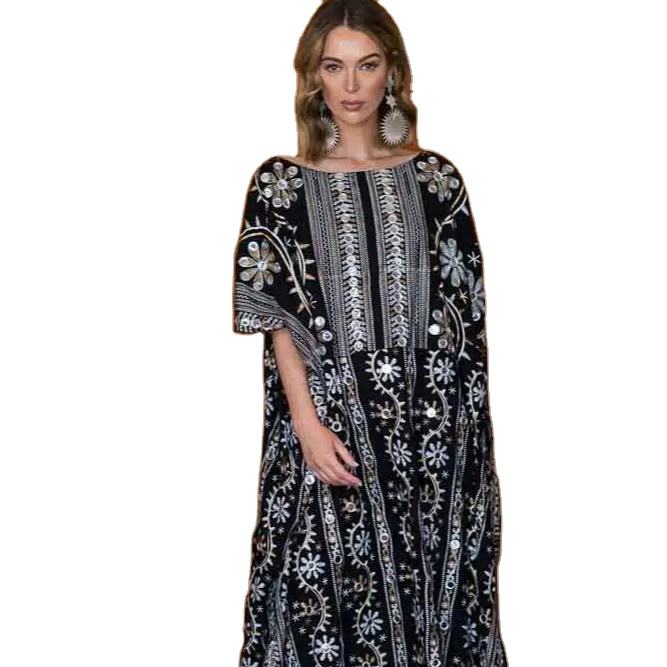 เดรสแขนสั้นปักลายสไตล์โบโฮสำหรับผู้หญิงชุดเดรสใส่ไปงานปาร์ตี้สไตล์โบฮีเมียนแขนสั้นขนาดใหญ่พิเศษ