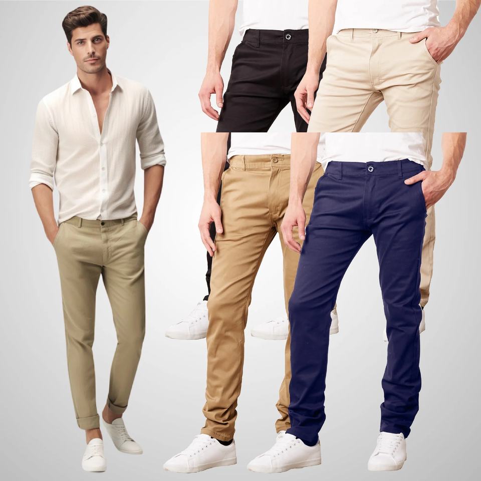 กางเกงชิโนผ้าฝ้าย/สแปนเด็กซ์ผ้าสแปนเด็กซ์ลำลองเอวกลางตรงไซส์ใหญ่พิเศษสำหรับผู้ชาย