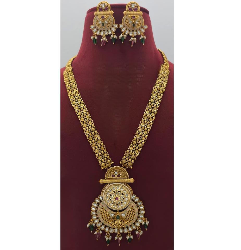 High Fashion Premium Quality Matte Gold Finish Designer Long Necklace Set With Earrings for Wedding Wear Collection For Women
