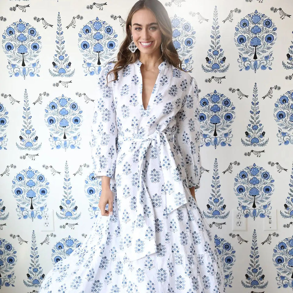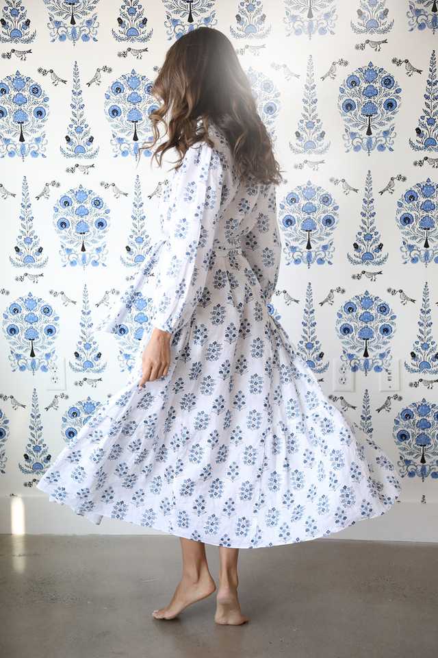 เดรสแม็กซี่ยาวสไตล์ยิปซีงานทำมือชุดเดรสยาวสามส่วนพิมพ์ลายดอกไม้แฟชั่นชั้นสูง