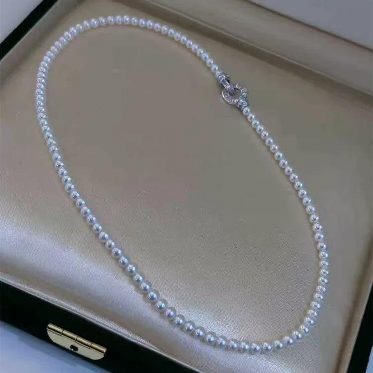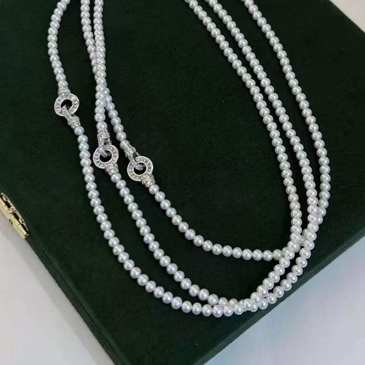 สร้อยคอมุกน้ำจืดธรรมชาติสไตล์แฟชั่นชั้นสูง 3-4 วง ประดับเพชรทรงสี่เหลี่ยมเรียบง่าย ขายส่ง