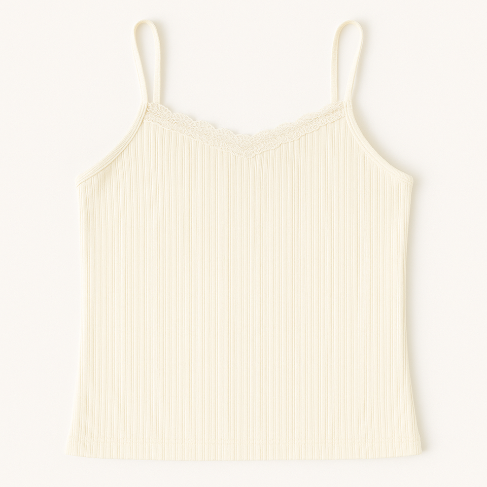 ชุดนอนลำลองผู้หญิงแฟชั่นระดับไฮเอนด์ เสื้อสายเดี่ยวผ้าริบถักแต่งลูกไม้ พร้อมกางเกงขาสั้นเหนือเข่า เนื้อผ้านุ่มสบาย ใส่สบาย ผลิตจากผ้าฝ้าย 100%
