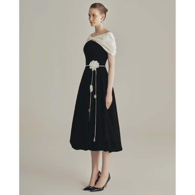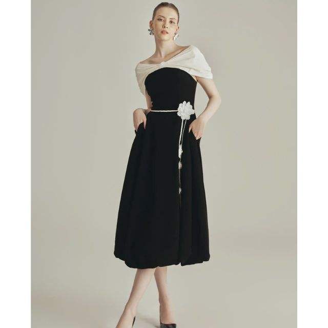 ชุดเดรสยาวปานกลางสำหรับผู้หญิงแฟชั่นชั้นสูง สไตล์ลำลองหรูหรา พร้อมเอวธรรมชาติ บริการ ODM จากเวียดนาม