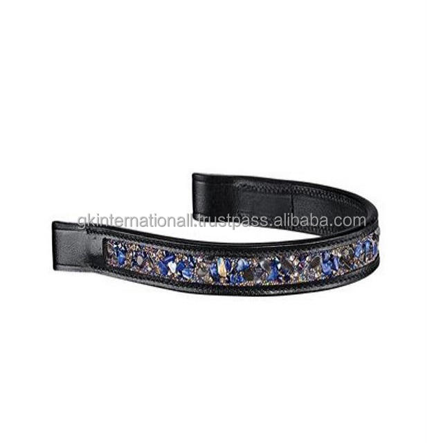 สายรัดคิ้วม้าหนังอังกฤษสีดำสำเร็จสูง,ปรับแต่งด้วยคริสตัลขนาดใหญ่แถบคิ้วพลอยเทียมระยิบระยับ