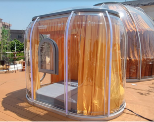 เต็นท์ทรงโดมโพลีคาร์บอเนตโปร่งใสทนไฟสูงโพลีเอสเตอร์ทนทานสำหรับการจัดนิทรรศการร้านอาหารกลางแจ้ง5เมตร