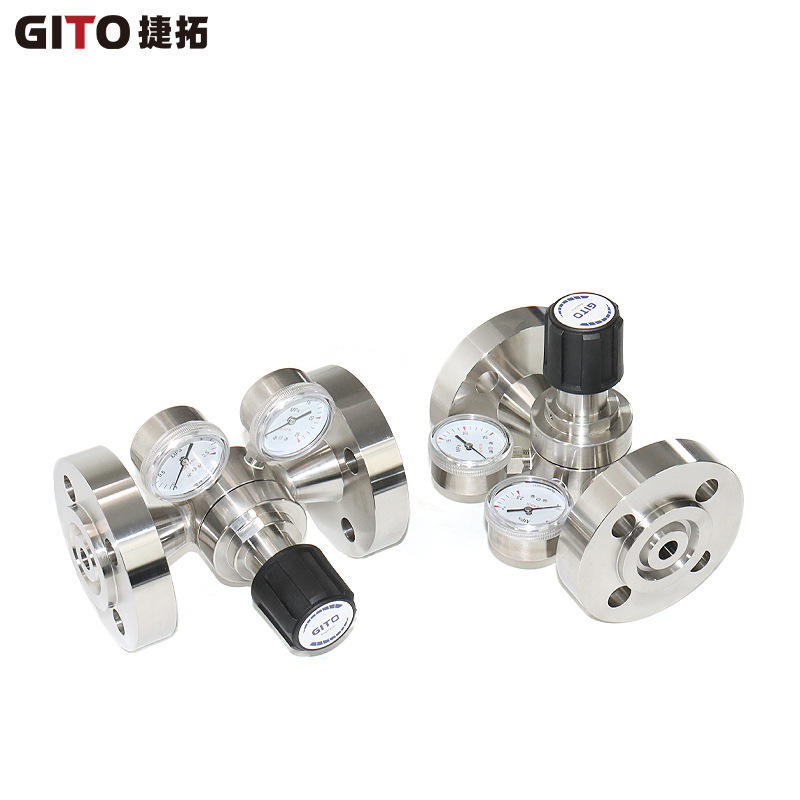 วาล์วลดแรงดันแบบสองขั้นตอน ทำจากเหล็กกล้าไร้สนิม 316L ชนิด High-Flow พร้อมหน้าแปลน