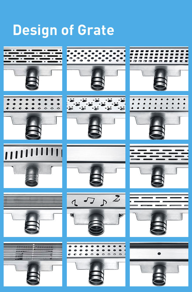 High Flow Capability 304 Stainless Steel Side Drainage Floor Drain Linear 500-1000mm Long Shower Floor Drain for Bathroom