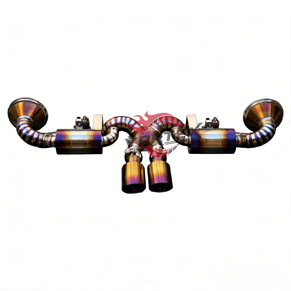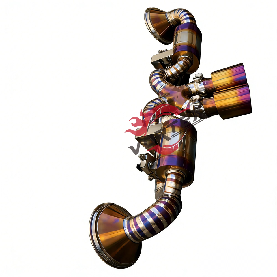 ระบบท่อไอเสียแบบ Catback ยี่ห้อ Vortex Titanium Valvetronic สำหรับรถ Porsche 992 GT3 4.0L ปี 2022-2025 ควบคุมด้วยรีโมท สีฟ้าเบิร์นท์ ขนาด 1.2 มม.