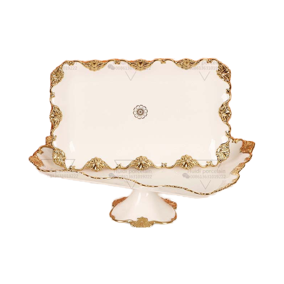 จานรูปดอกไม้ติดกระดูกจีนพร้อมขอบทองเซรามิกใหม่