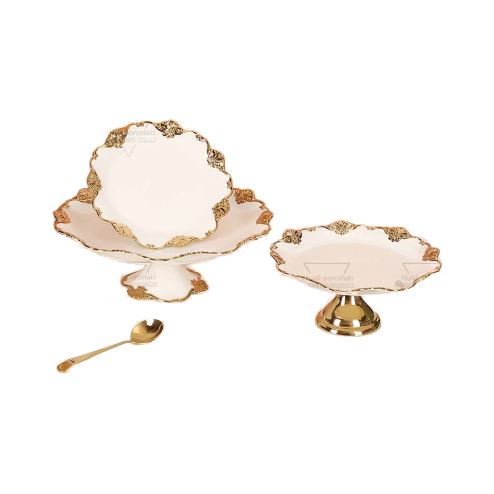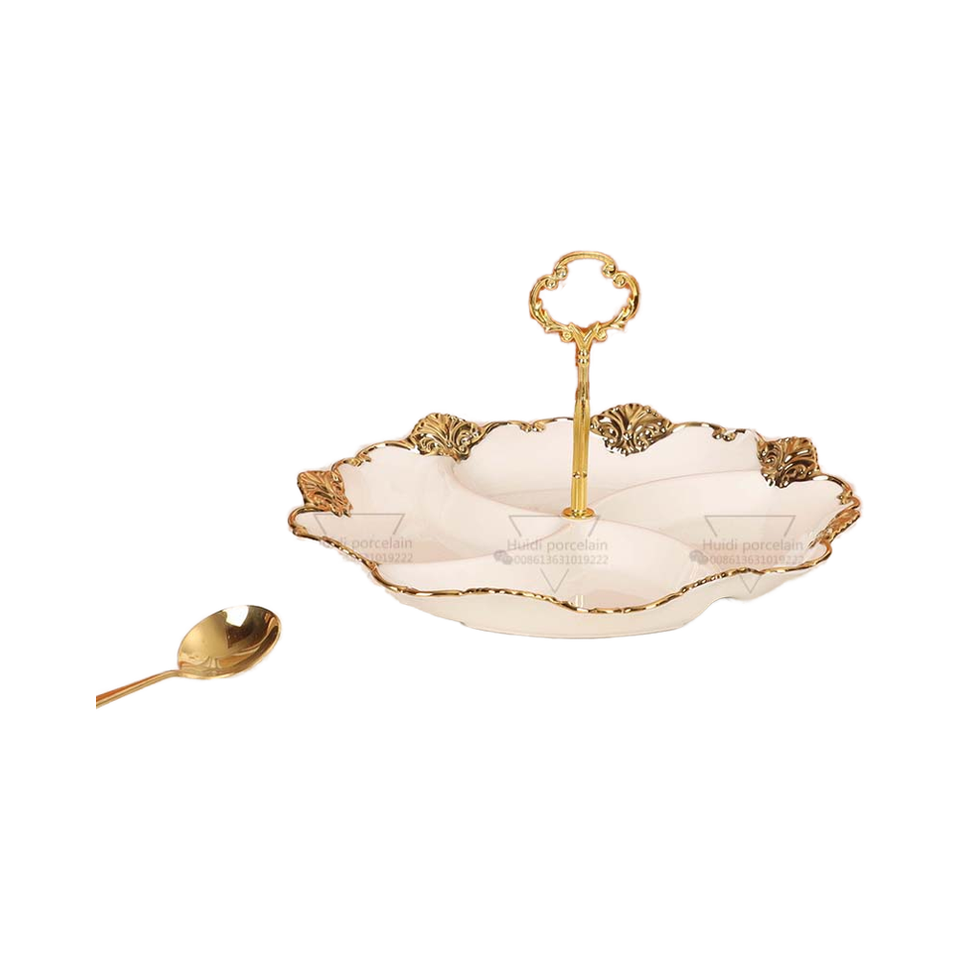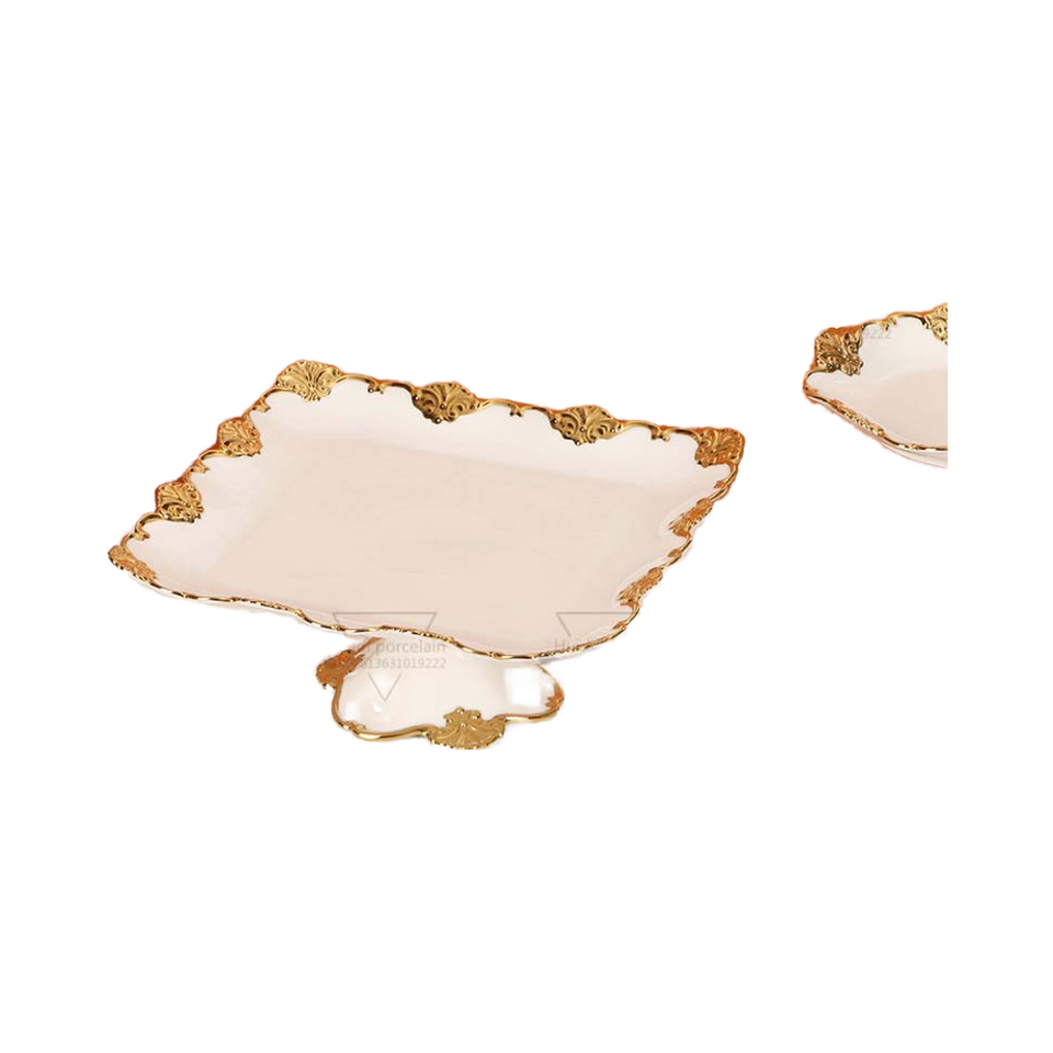 จานผลไม้เซรามิกทรงสูง เป็นมิตรกับสิ่งแวดล้อม เหมาะสำหรับของหวาน ขนมขบเคี้ยว ผลไม้รวม ถั่ว ถาดเสิร์ฟสำหรับชา เค้ก จัดแสดงอาหารในร้านอาหาร