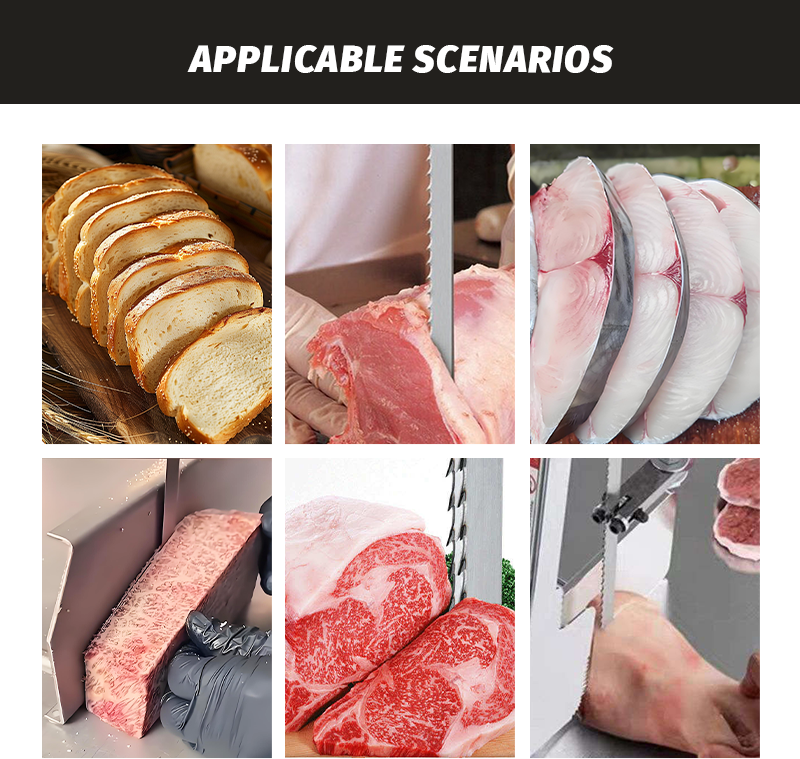 ใบเลื่อยตัดกระดูกปลาและเนื้อสัตว์เกรดอุตสาหกรรมความถี่สูง OEM ปรับแต่งได้สำหรับเครื่องตัดเนื้อหมู เนื้อวัว และเนื้อปลา