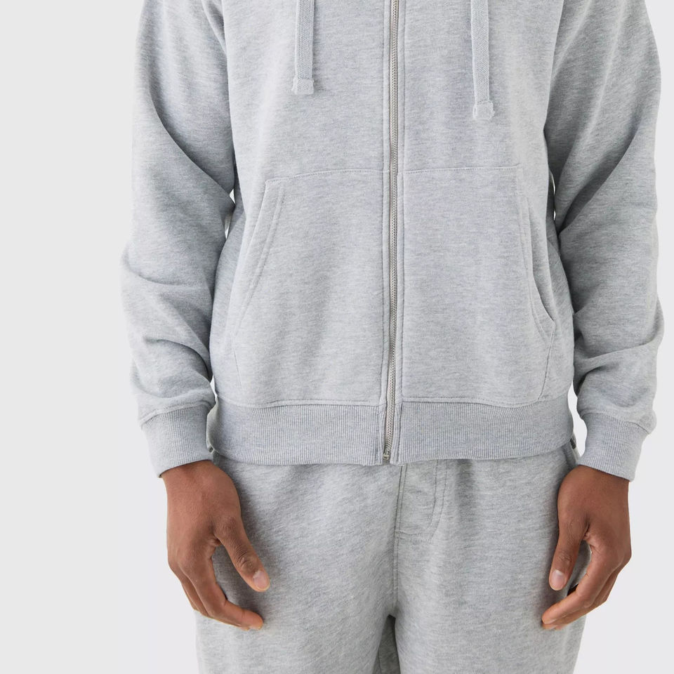 เสื้อมีฮู้ดแบบรูดซิปบนผ้าฝ้าย GSM สูงเครื่องแต่งกายแนวสตรีทผ้าโอเวอร์ไซส์ผลิตจากโรงงาน