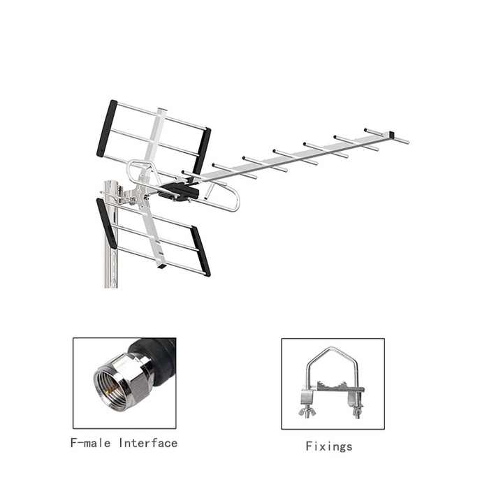 เสาอากาศรับสัญญาณทีวีดิจิตอลความคมชัดสูงแบบ High Gain สำหรับภายนอกอาคาร ใช้คลื่น UHF วัสดุอลูมิเนียม รับสัญญาณระยะไกล รองรับระบบ DVB-T2 และ TDT