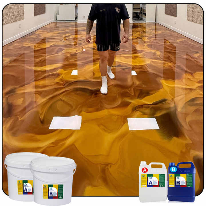 อีพ็อกซี่เรซิ่นใสแบบไฮกลอส ปราศจากฟองอากาศ พร้อมสารทำให้แข็ง สำหรับงานพ่นและเคลือบพื้นอีพ็อกซี่แบบเมทัลลิก ให้เอฟเฟกต์หินอ่อน