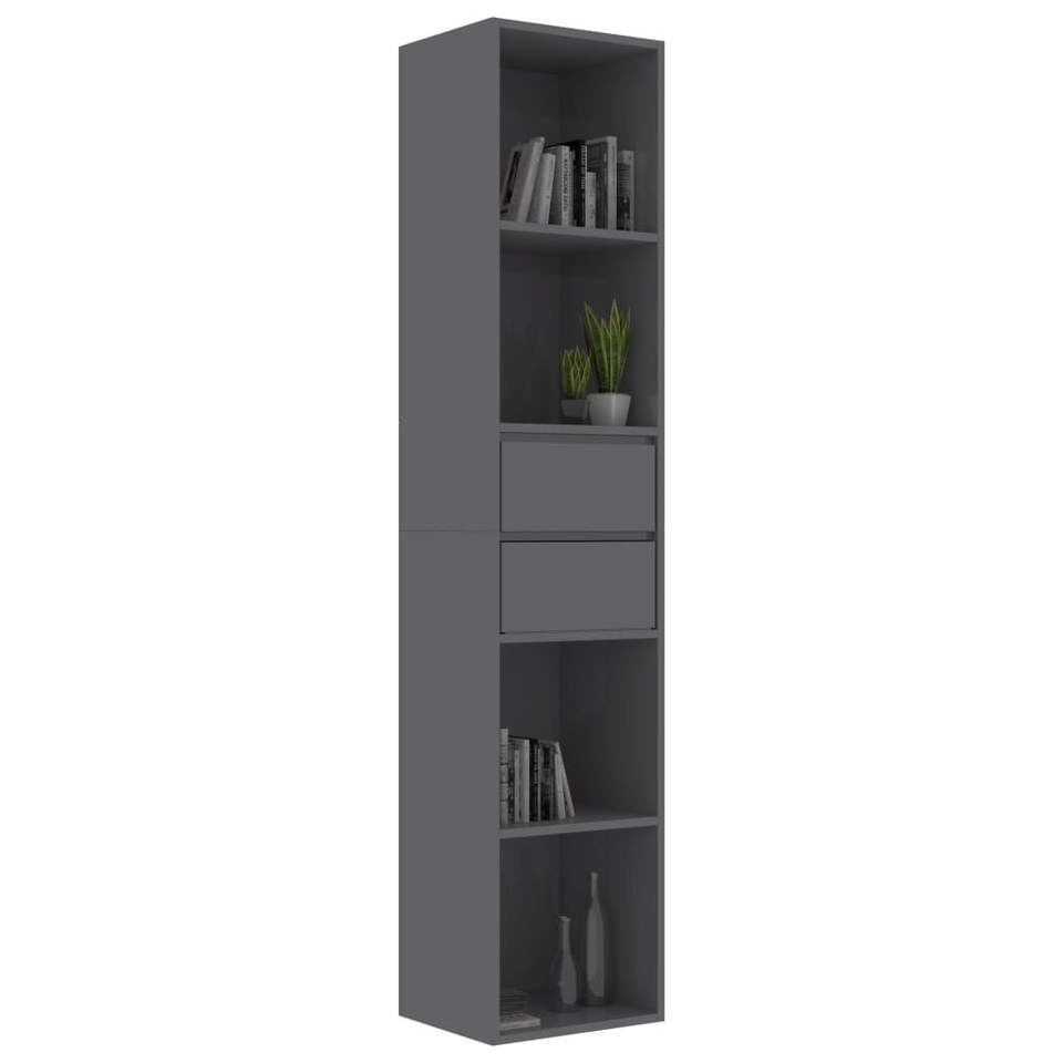 ตู้หนังสือไม้เอ็นจิเนียร์สีเทาเงาสูง 14.2 นิ้ว x 11.8 นิ้ว x 67.3 นิ้ว ตู้หนังสือและชั้นวางหนังสือ