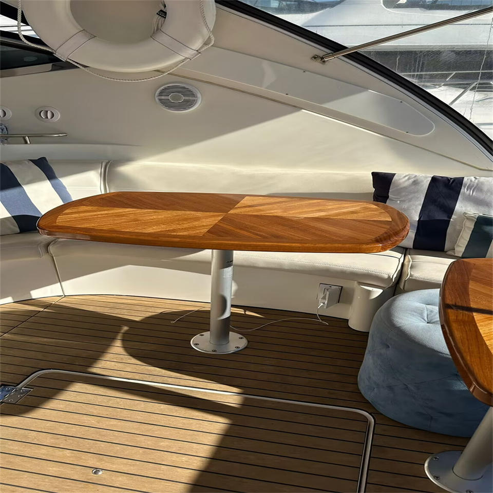 ท็อปโต๊ะทรงถังไม้สักเคลือบเงาขนาด 50x70 ซม. สำหรับเรือยอชท์และรถบ้าน อุปกรณ์เสริมสำหรับการค้าขายข้ามพรมแดน