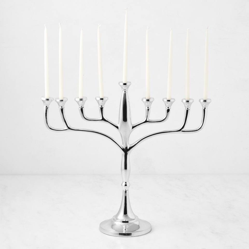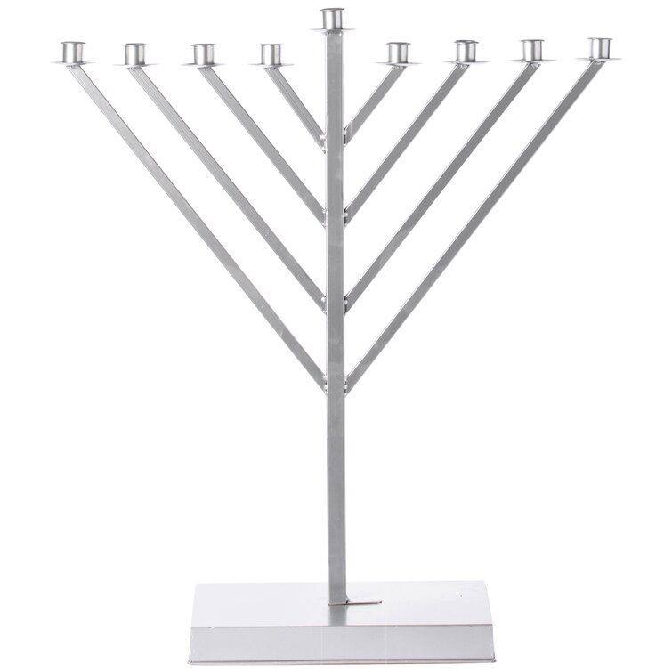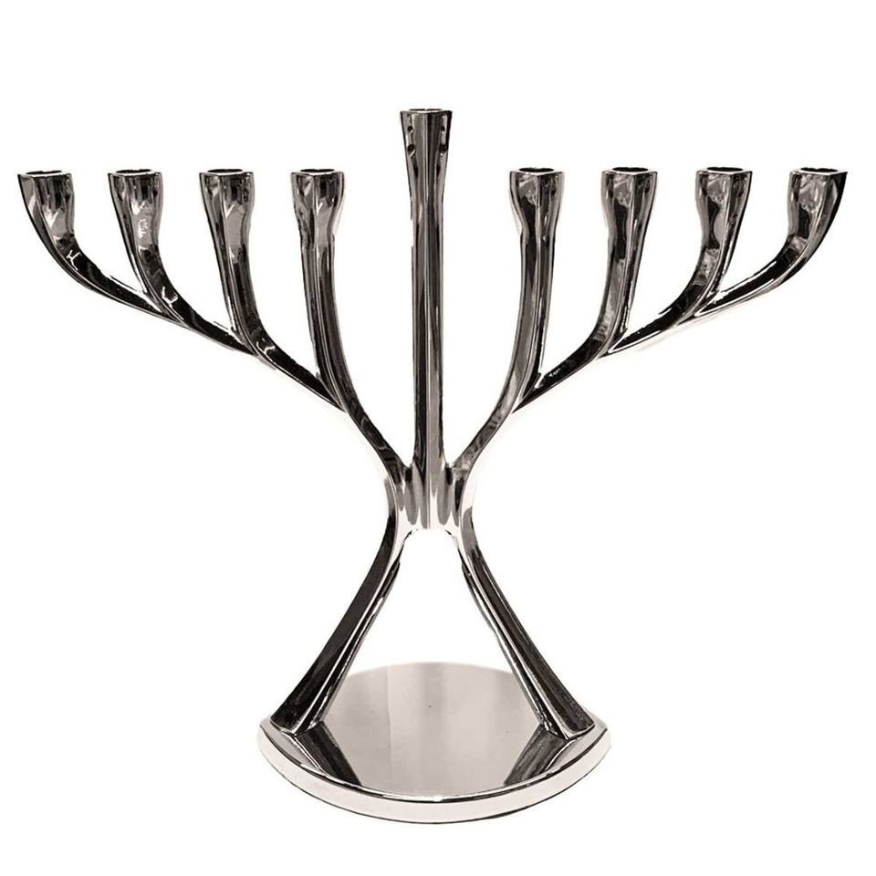 เชิงเทียนเมโนราห์สีเงินเงาสูง 9 กิ่ง พร้อมแขนโค้งมน ดีไซน์ทันสมัยสำหรับเทศกาลฮานุกกะของชาวยิว