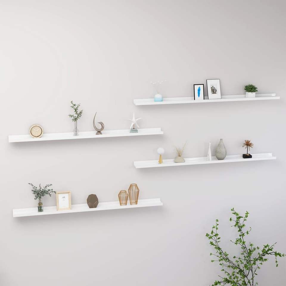 ชั้นวางของติดผนังสีขาวเงาสูง 45.3"x3.5"x1.2" ชุด 4 ชิ้น