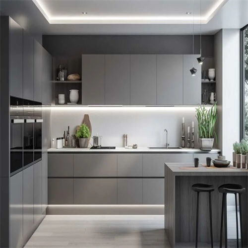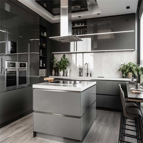 Isand ตู้ครัวแบนแบนสีขาวเงาสูงสไตล์โมเดิร์นแบบแยกส่วนกำหนดเองด้วยหินอ่อนที่กำหนดเอง