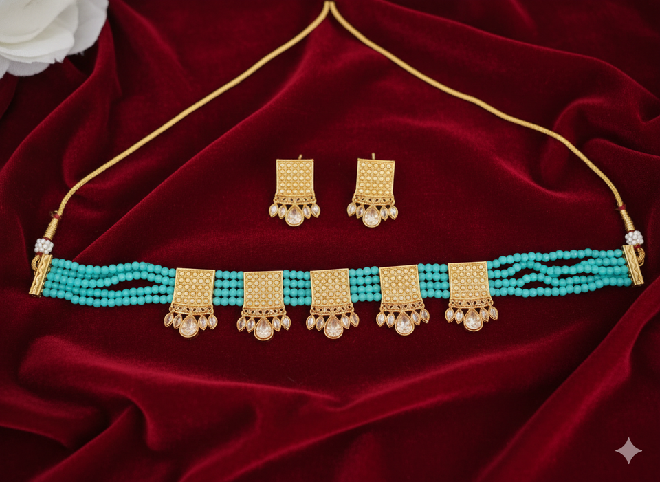 ชุดสร้อยคอเครื่องประดับโบราณสวยงามสไตล์หรูหราสำหรับงานปาร์ตี้ ดีไซน์ดั้งเดิมสง่างามสำหรับผู้หญิง