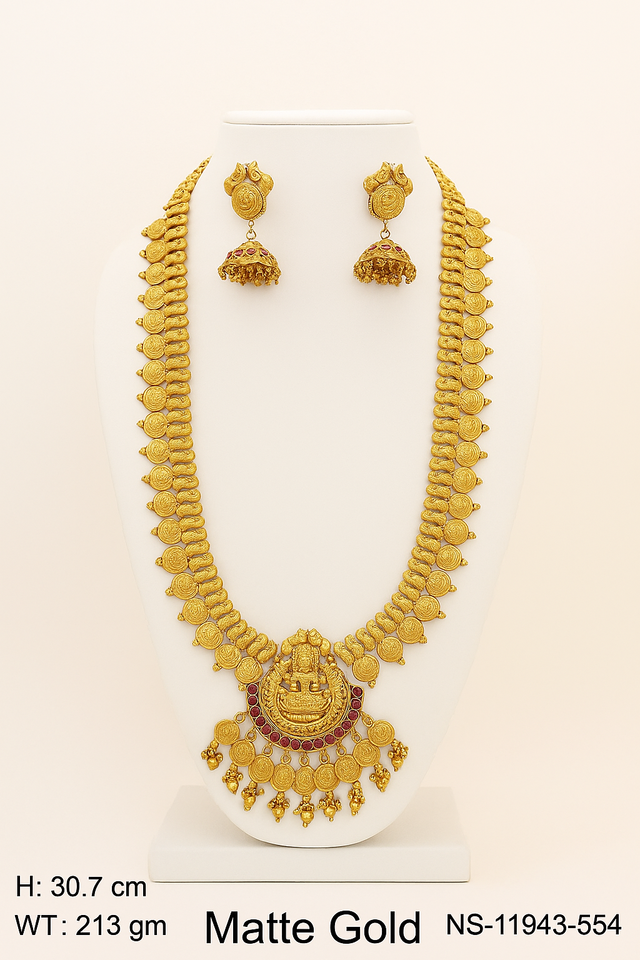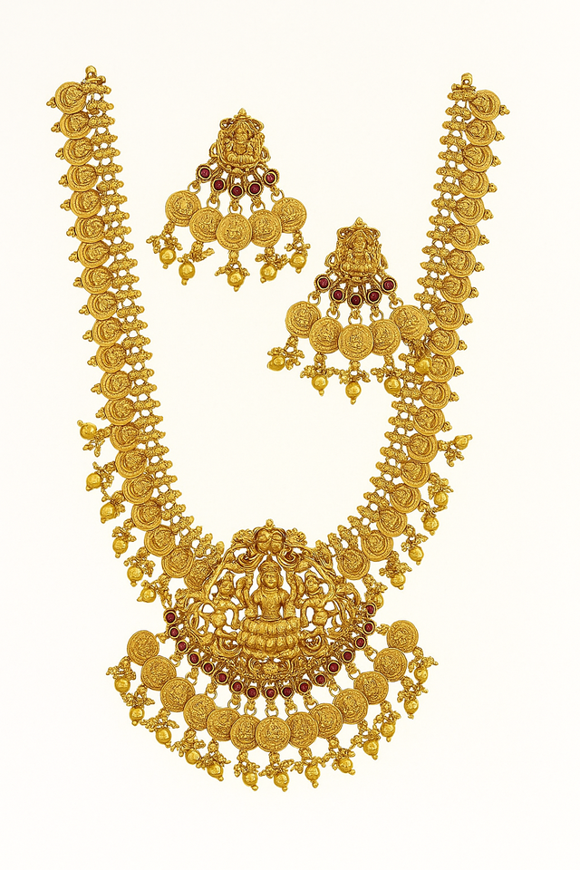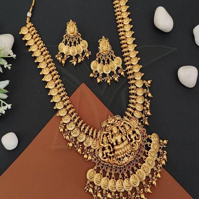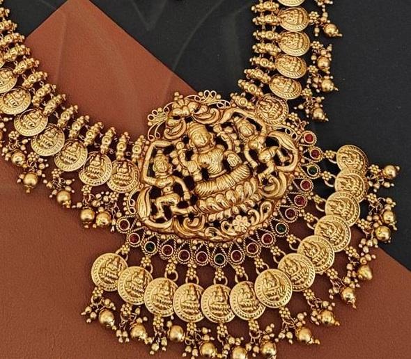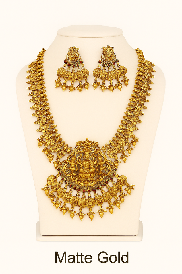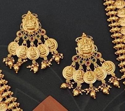 ชุดสร้อยคอเครื่องประดับวิหารทองคำชั้นสูงพร้อมจี้และต่างหูสไตล์อินเดียแบบดั้งเดิมพร้อมจี้สไตล์โบราณ