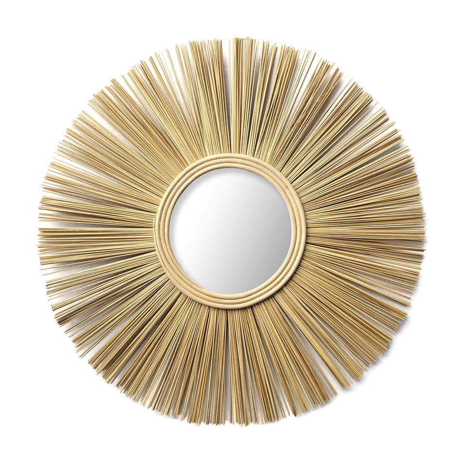 หวายไม้ไผ่ทรงกลมขนาดเล็กกระจกห้องน้ำตกแต่งบ้านด้วยหวายจากธรรมชาติเพื่อความปลอดภัยของตกแต่งบ้านหรูหรา