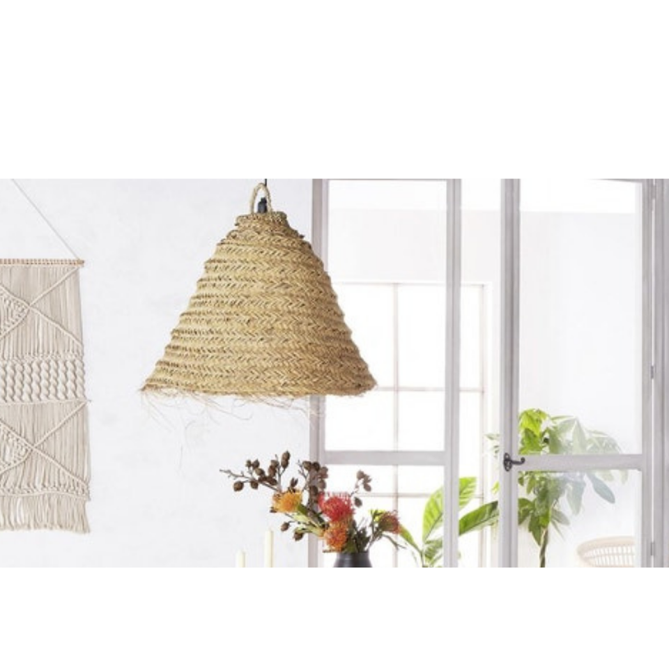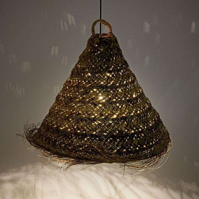 โคมไฟแชนเดอเลียหวายหญ้าทะเลราฟเฟอร์โป๊ะทอสีปรับแต่งขนาดได้สำหรับบ้านคาเฟ่