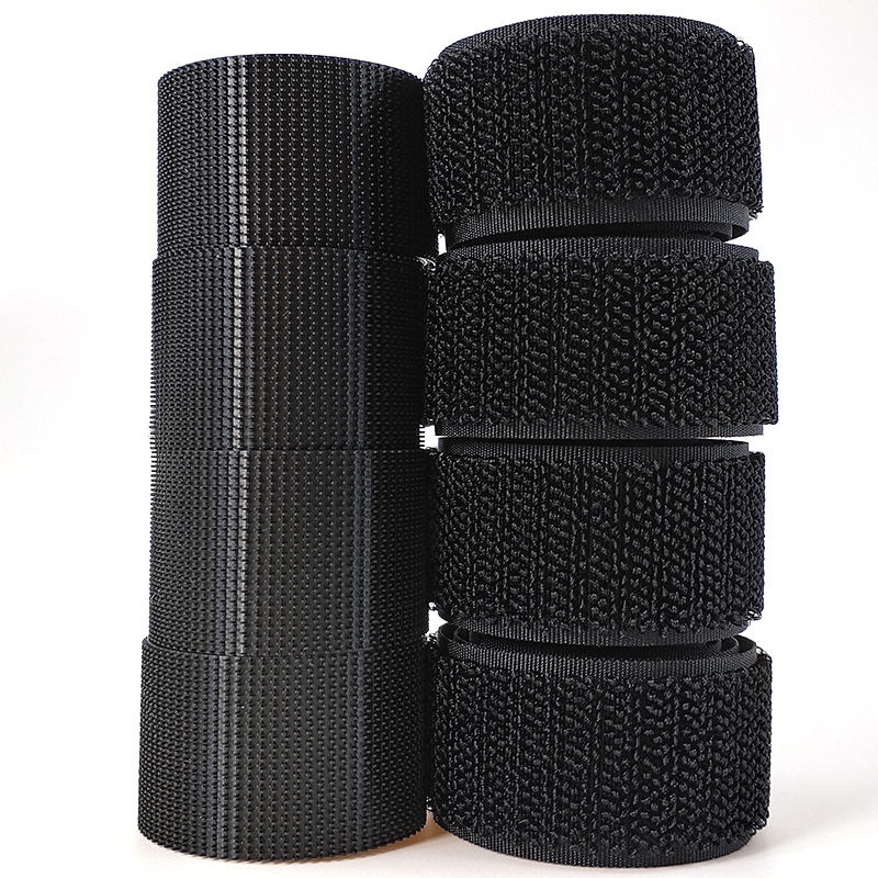 เทปห่วงไนลอน100% คุณภาพสูงสีดำเป็นมิตรกับสิ่งแวดล้อมผ้าที่ถอดออกได้แถบรัดแบบไม่มีเส้นใยพิเศษสองชั้น