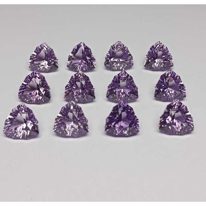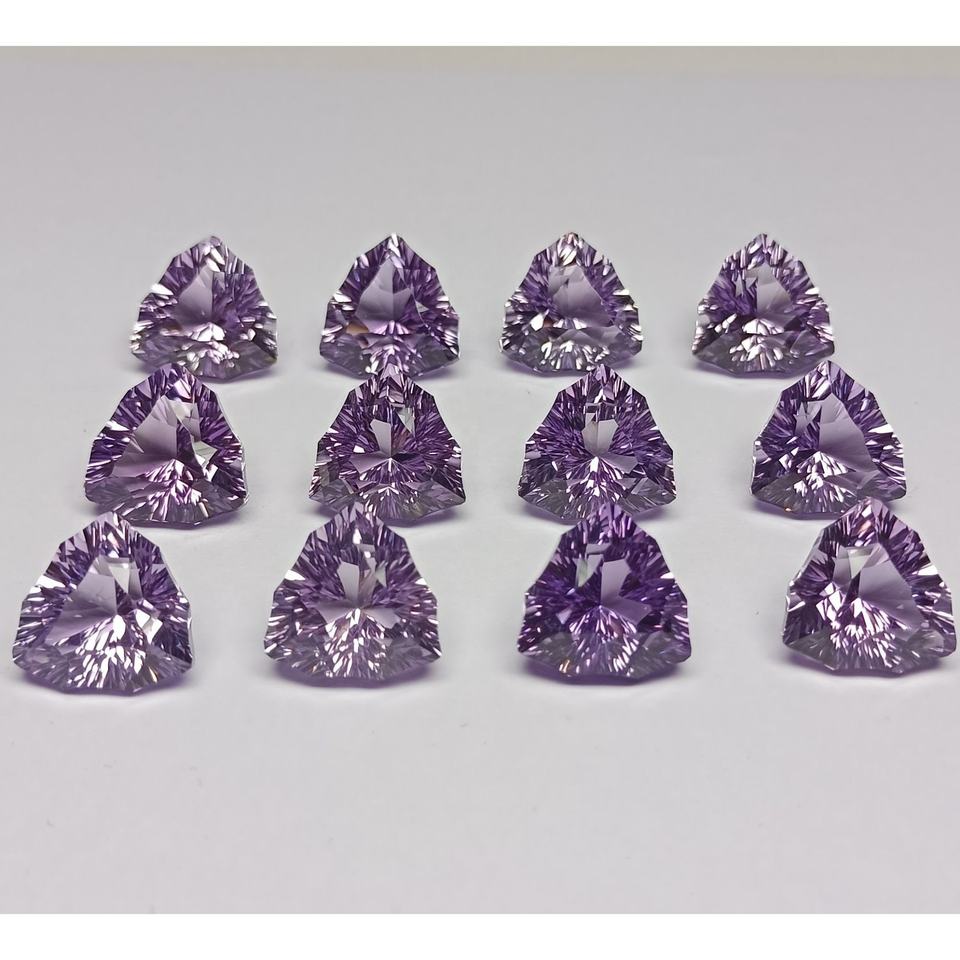 ควอตซ์อเมทิสต์สีชมพูธรรมชาติคุณภาพสูง ขนาด 13 มม. ผ่านการอบด้วยความร้อน ทรงทริลเลียนแฟนซี เปลี่ยนสีชมพูลาเวนเดอร์