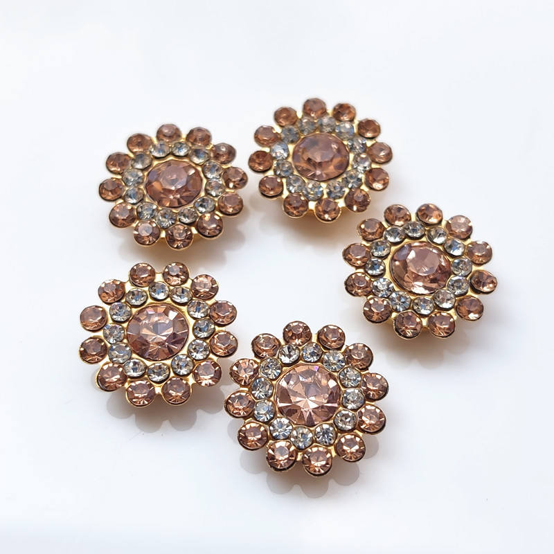 คริสตัลรูปดอกทานตะวันคุณภาพสูง ขนาด 14 มม. แบบสามชั้น สำหรับตกแต่งเสื้อผ้า รองเท้า กระเป๋า อุปกรณ์เสริม พร้อมการ์ดสี ดีไซน์ใหม่