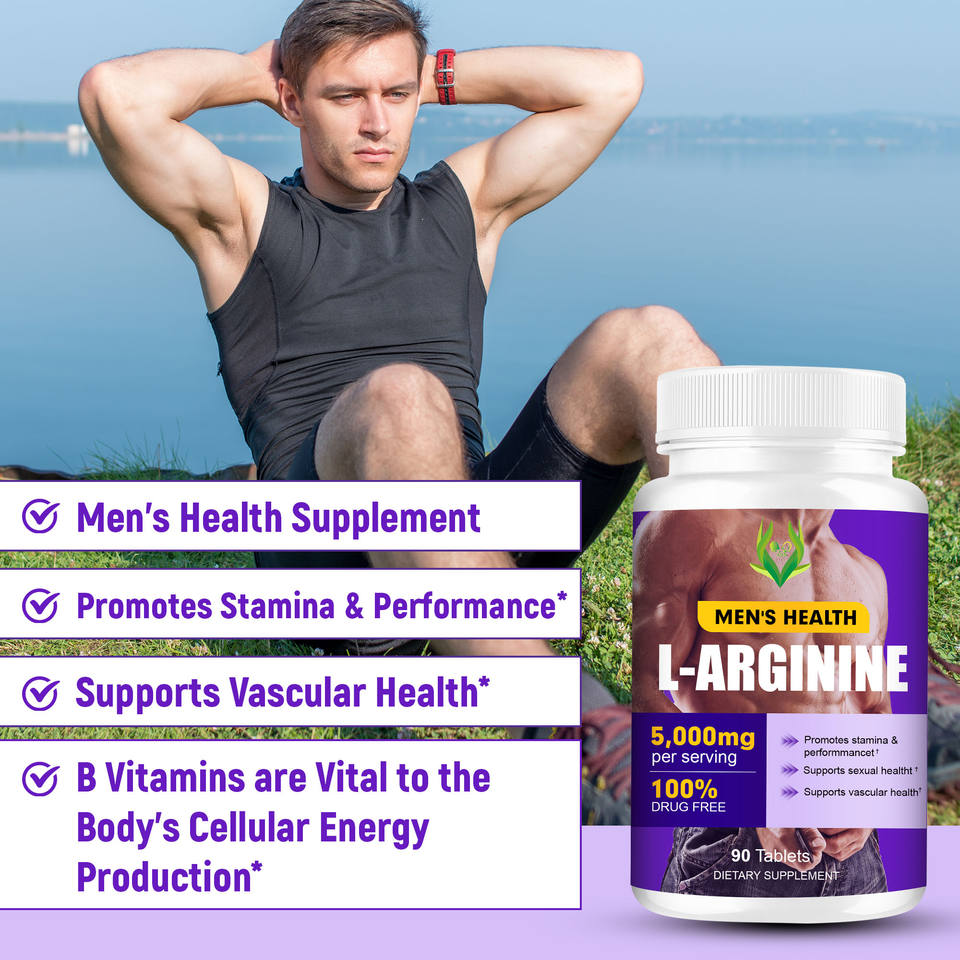 แท็บเล็ตแอลอาร์จินีน5000มก. อาหารเสริมเสริมสร้างสุขภาพหลอดเลือดชายธรรมชาติด้วยวิตามิน B6 B12เม็ดผู้ชาย