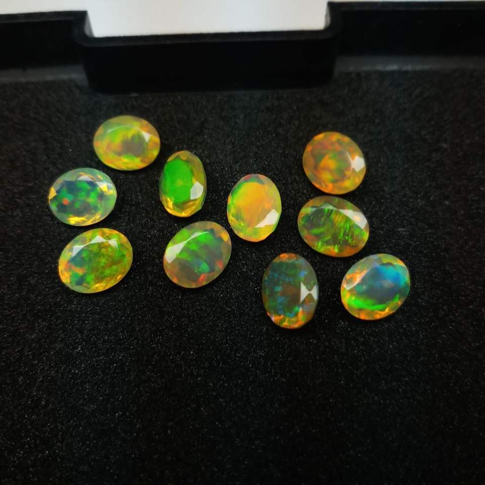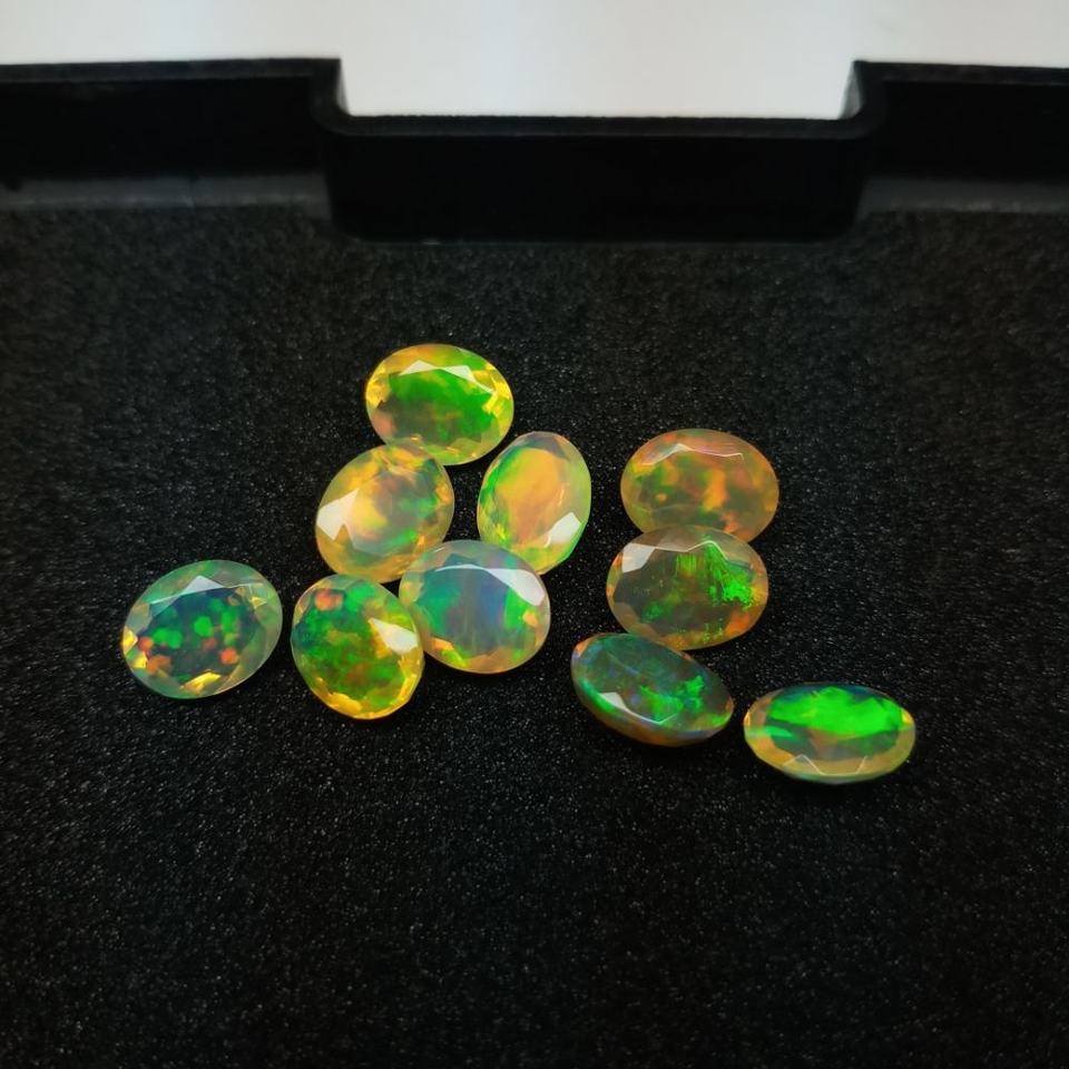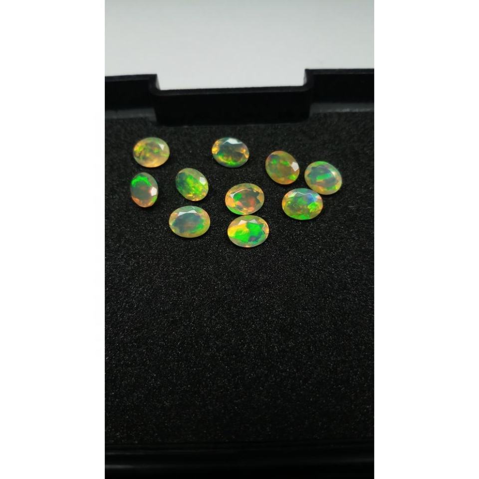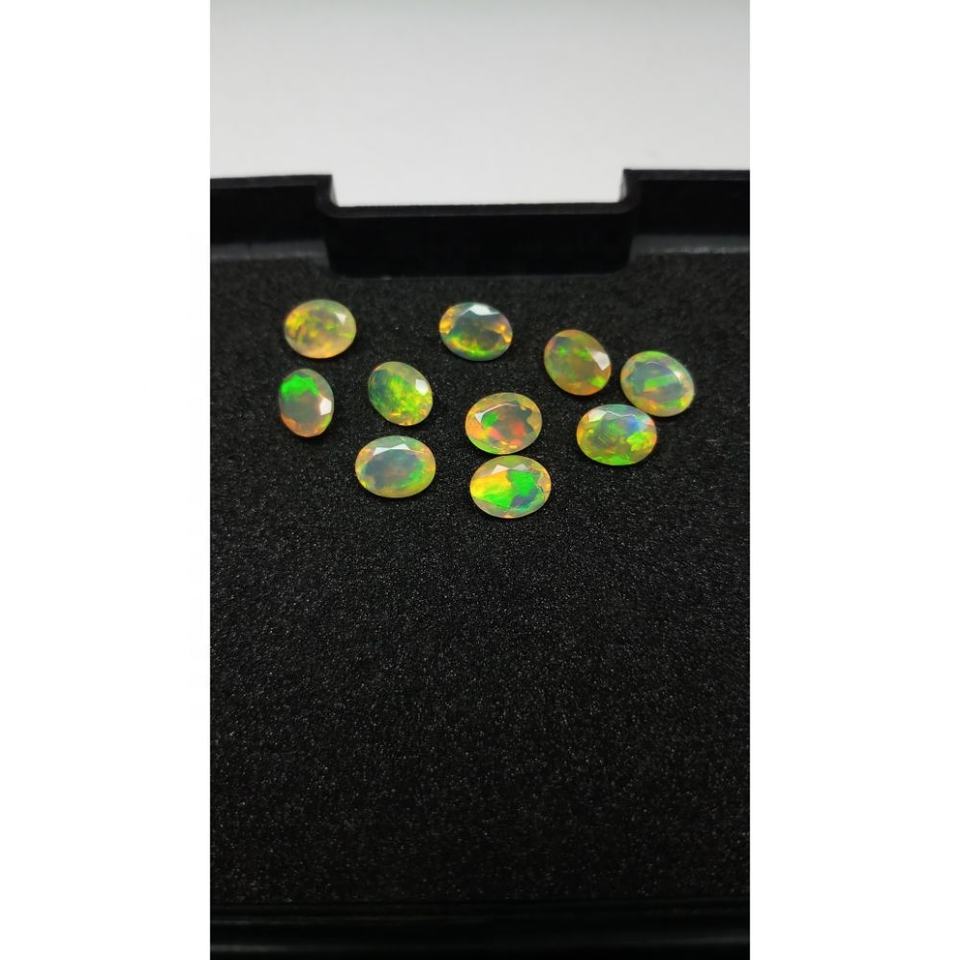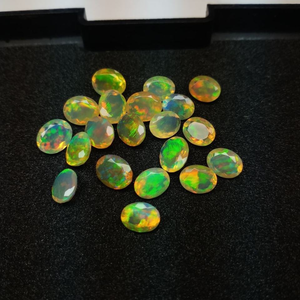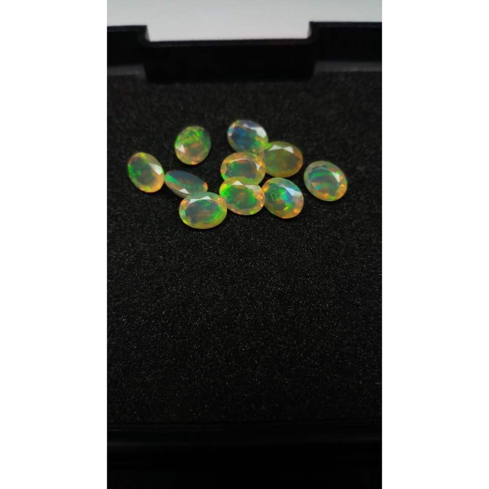 พลอยไฟโอปอลสีเหลืองทรงวงรีขนาด7x9มม. โอปอลสีเหลืองเอธานอลสอบเทียบขนาด9มม. สีขาวดำเอธิโอเปียนหลวม