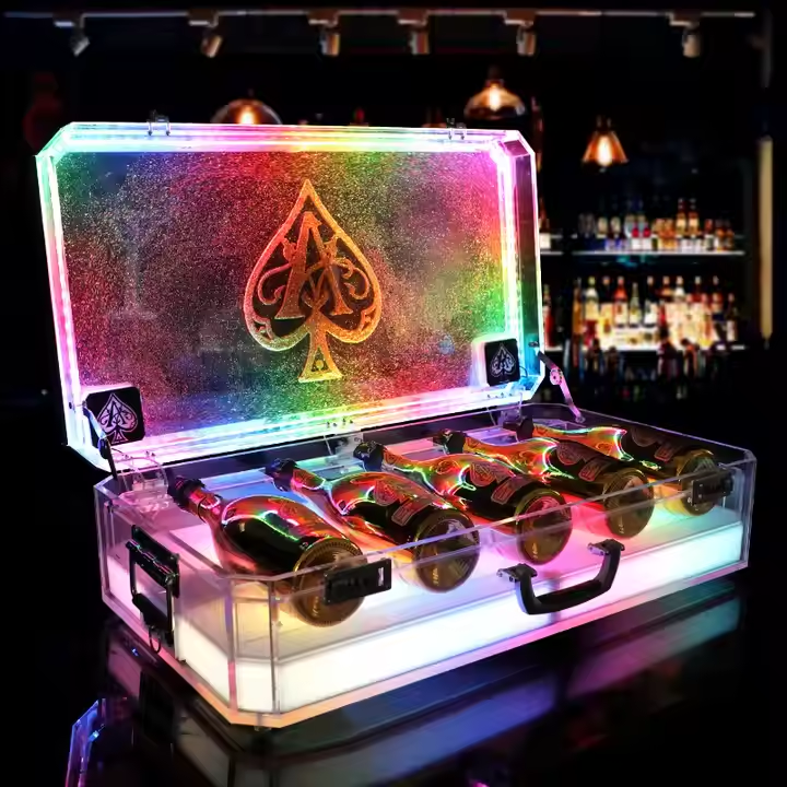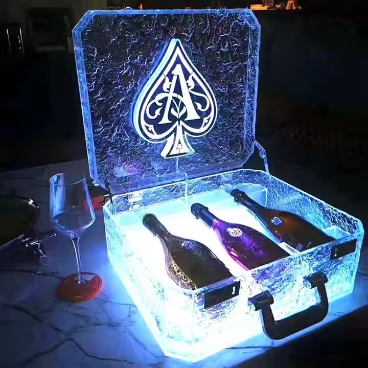อุปกรณ์บาร์เกรดสูงพร้อมโลโก้ที่กำหนดเองไฟ LED น้ำแข็งหินแชมเปญวิสกี้ไวน์คุณลักษณะการตกแต่งขวด