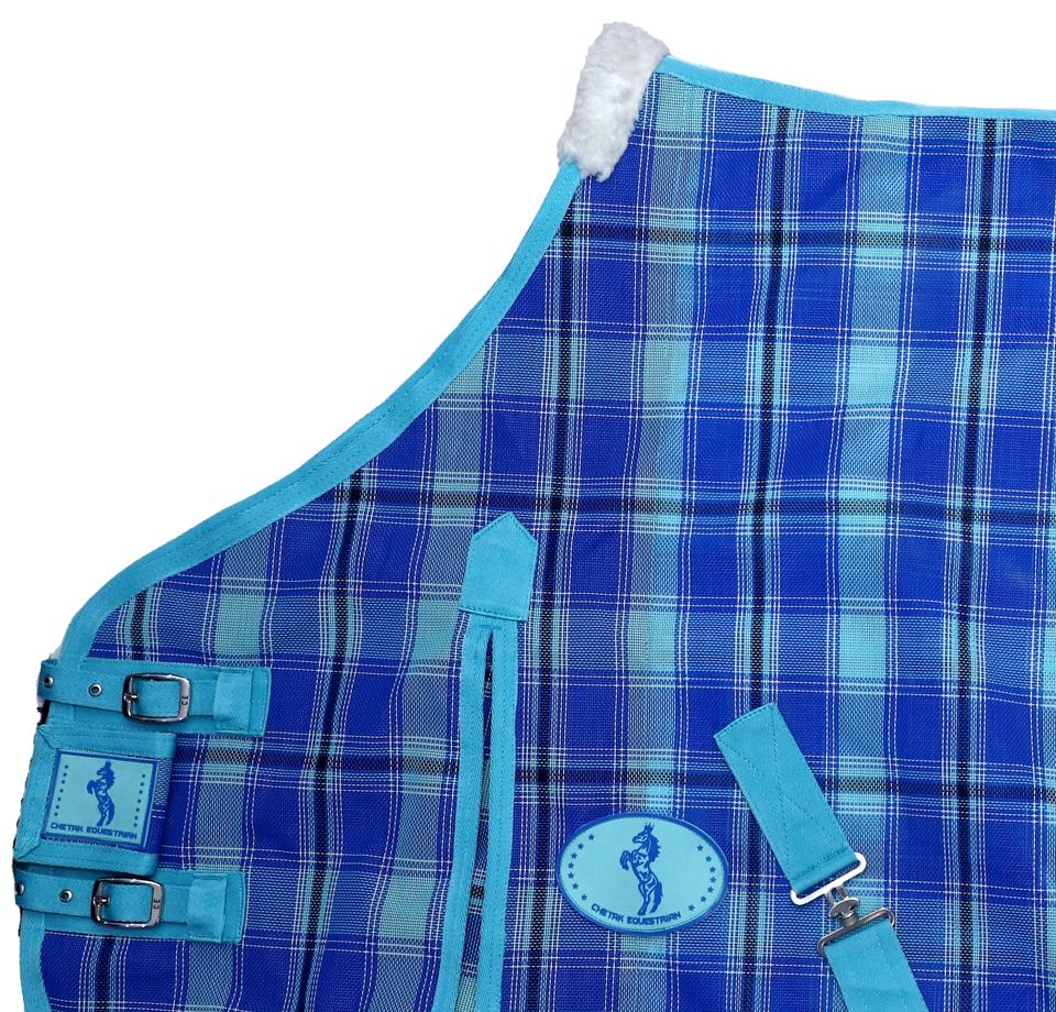 ผ้าคลุมม้าตาข่ายพีวีซีสีน้ำเงินคุณภาพสูง สำหรับฤดูร้อน ทนทาน สวมใส่สบาย เหมาะสำหรับการฝึกขี่ม้าในฤดูใบไม้ผลิ/ฤดูใบไม้ร่วง บุด้วยผ้าทาฟต้า 410D ยี่ห้อ RIDIT