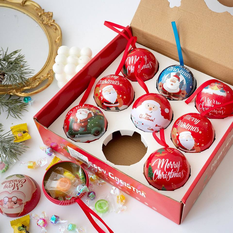 ชื่อผลิตภัณฑ์:กระป๋องใส่ลูกกวาดลูกกระป๋องสำหรับตกแต่งเทศกาลคริสต์มาสแบบแขวน