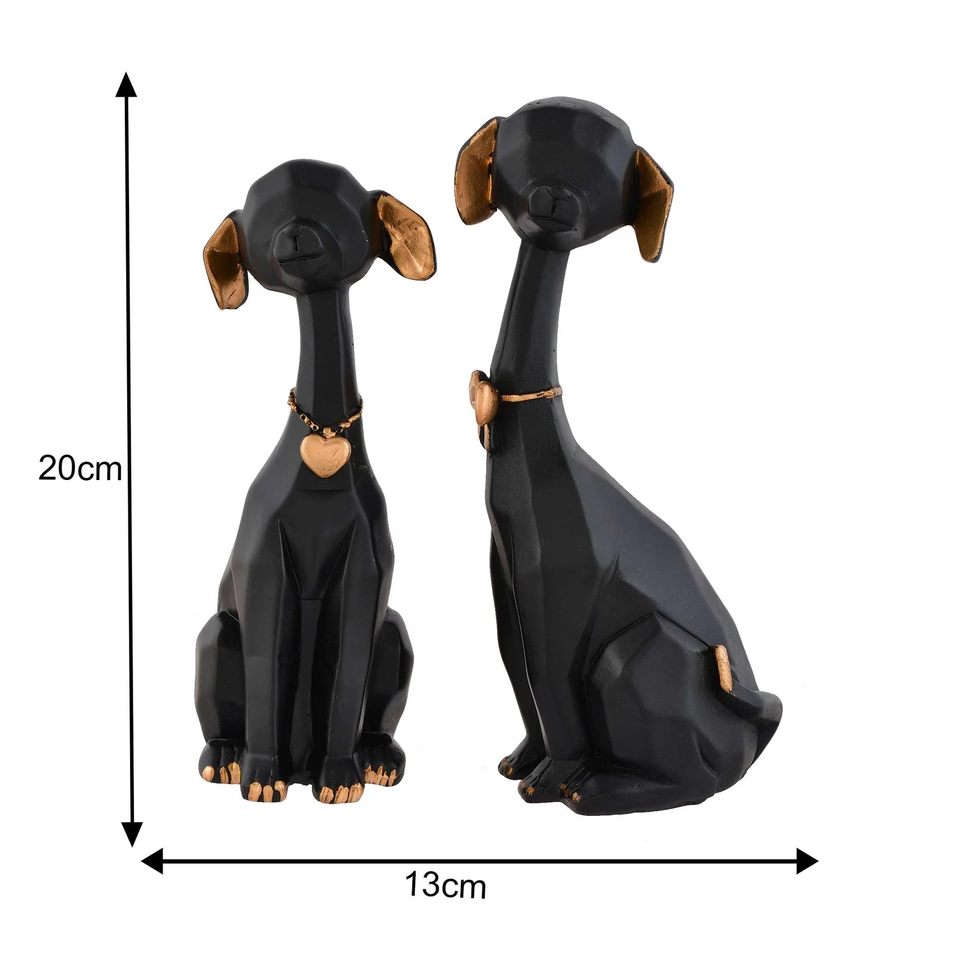 รูปปั้นสุนัขเรซิ่นโลหะสีดำทอง พรีเมียม งานแฮนด์เมด ดีไซน์คลาสสิก ของตกแต่งบ้านและสำนักงาน