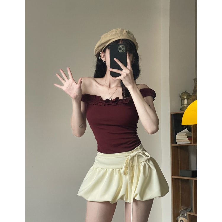 เสื้อยืดผู้หญิงทรงเข้ารูปเกรดพรีเมียม หลายสี เอวสูง ทรงตรง บริการ ODM ตกแต่งระบายขอบคอแบบบาร์โดต์