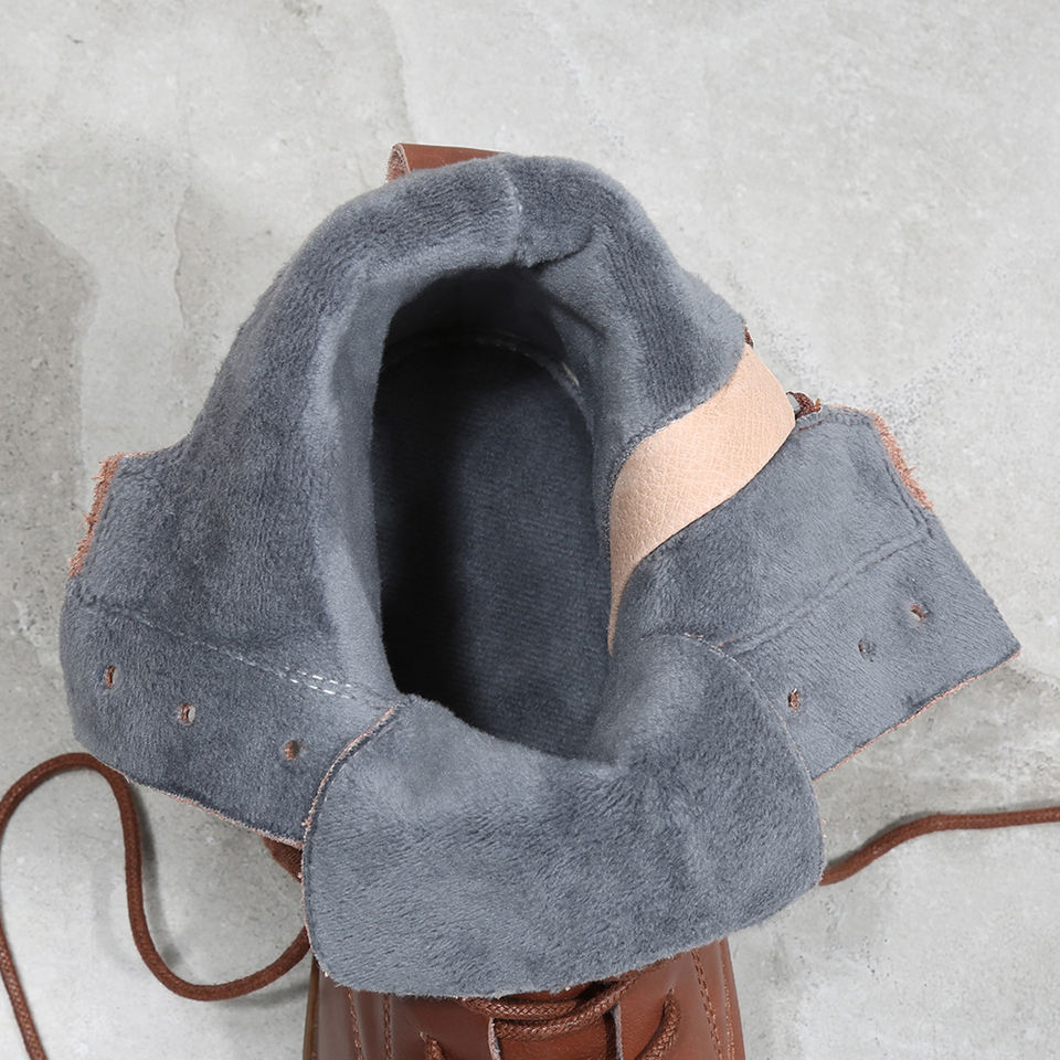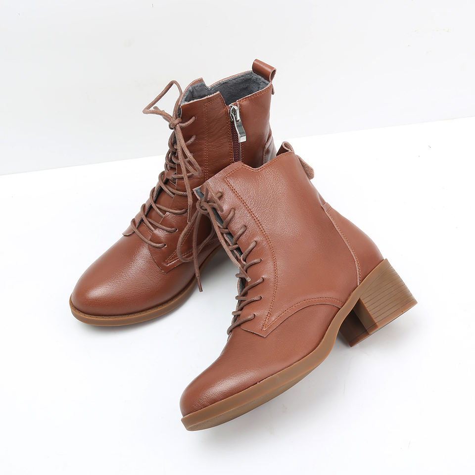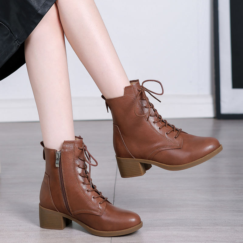 รองเท้าบูทผู้หญิงหนังวัวคุณภาพสูง บุขนนุ่ม ซิปหนา ดีไซน์ผูกเชือก สวมใส่สบาย ทนทานต่อการสึกหรอ เหมาะสำหรับฤดูหนาว ฤดูใบไม้ผลิ และฤดูใบไม้ร่วง