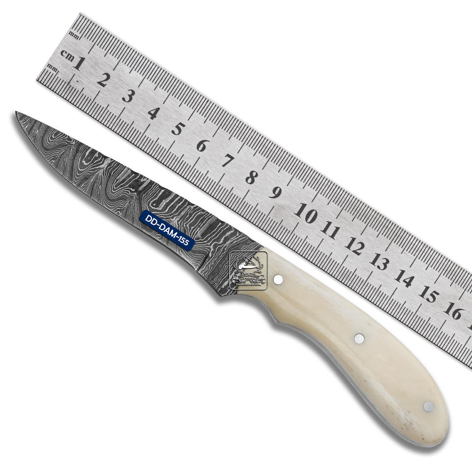 มีดล่าสัตว์ปรับแต่งได้เกรดสูงทำด้วยมือด้วยเลเซอร์หนังวัว DD-DAM-155ใบมีดเหล็กดามัสกัส